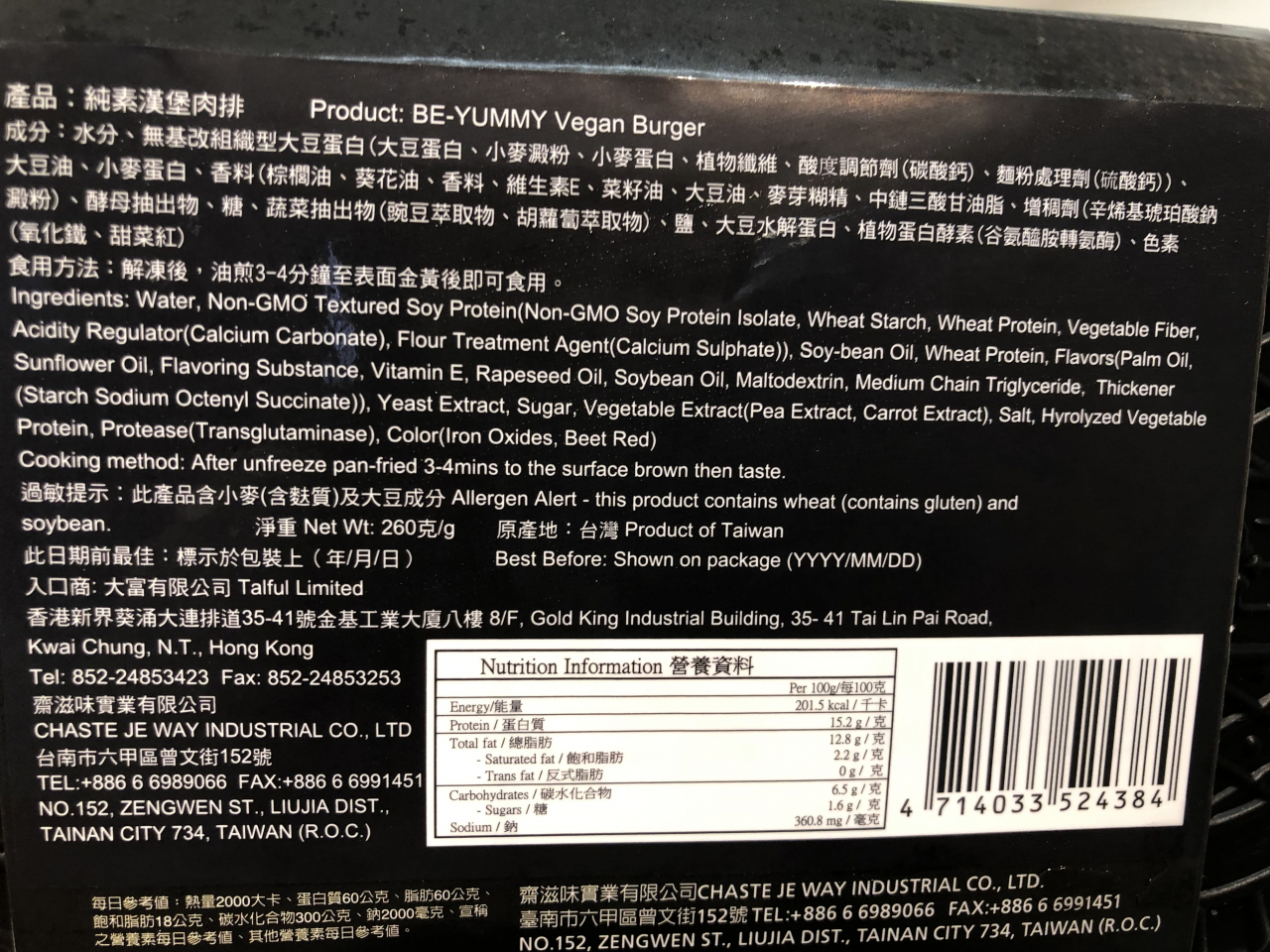 Be-Yummy Vegan Burger 纯素汉堡肉排 (TF 4384)